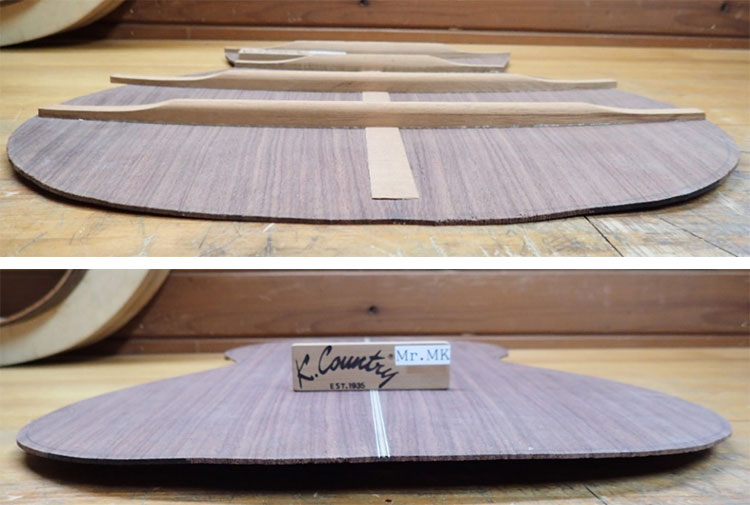 ヘッド裏にK.Countryロゴ、精悍なヴォリュートを削り出しています。