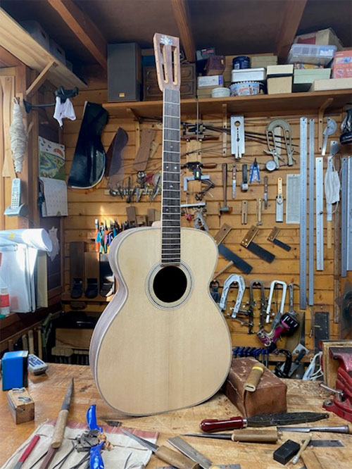 最も耳馴染みのある音を奏でる材料でOMタイプを製作、早いフレーズの演奏にも音の立ち上がりが良く演奏に音が遅れることなくついてきます。勿論音色・音量バランスは最高級です。